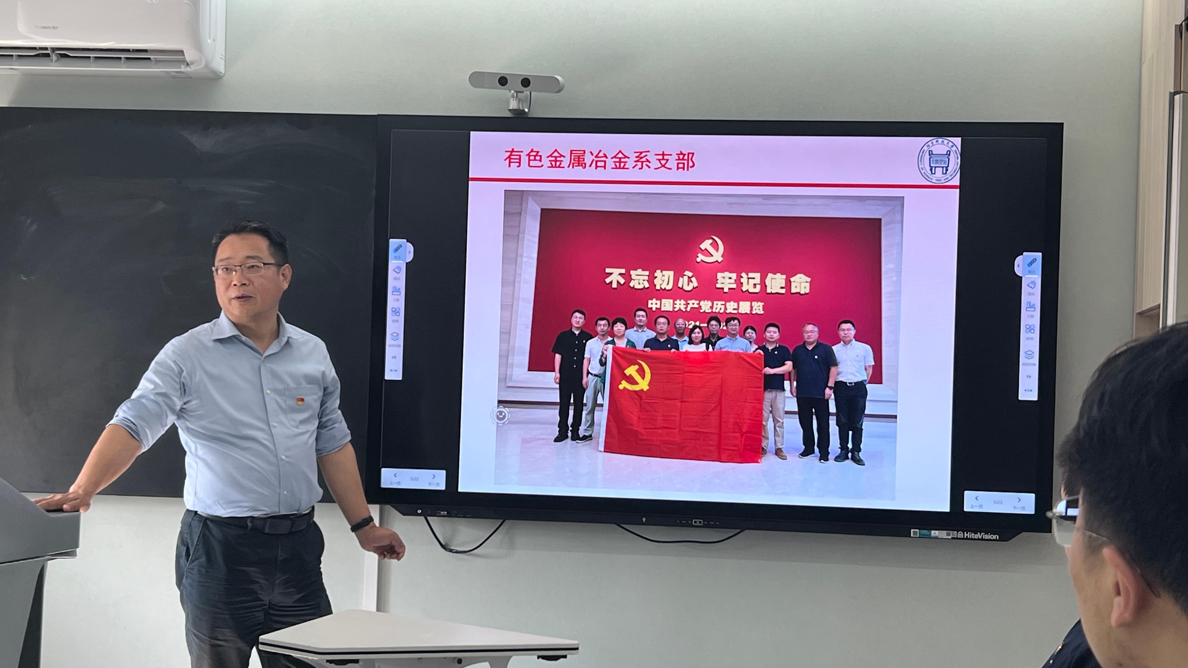 随后,双方进行交流讨论。科研工作方面,曹战民详细介绍了有色系党支部教学科研基本情况。陈永强、谢明壮、刘轩、隋娜作为有色系各梯队代表分享研究方向和特色。化学系党支部党员代表结合有色系研究方向,与各梯队老师进行深入交流,探讨了可能的交叉合作点。教学工作方面,曹战民建议利用人工智能技术将基础课与专业课的知识点有机串联,帮助学生构建系统化的知识体系,并简要介绍了冶金物理化学课程的内容框架。车平表示,化学系作为基础课程教学的重要执行者,应紧密结合冶金工程专业发展需求,优化教学方法,提升教学质量。