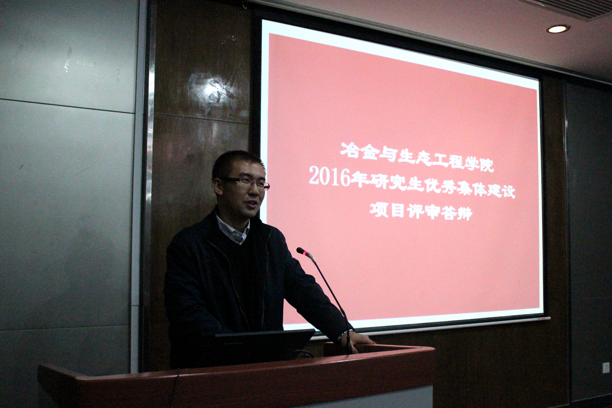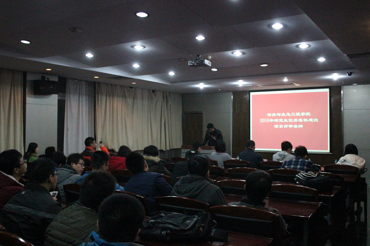 学院学生工作办公室主任、研究生辅导员李元坤老师宣读了《2016年研究生集体建设项目评审标准》。