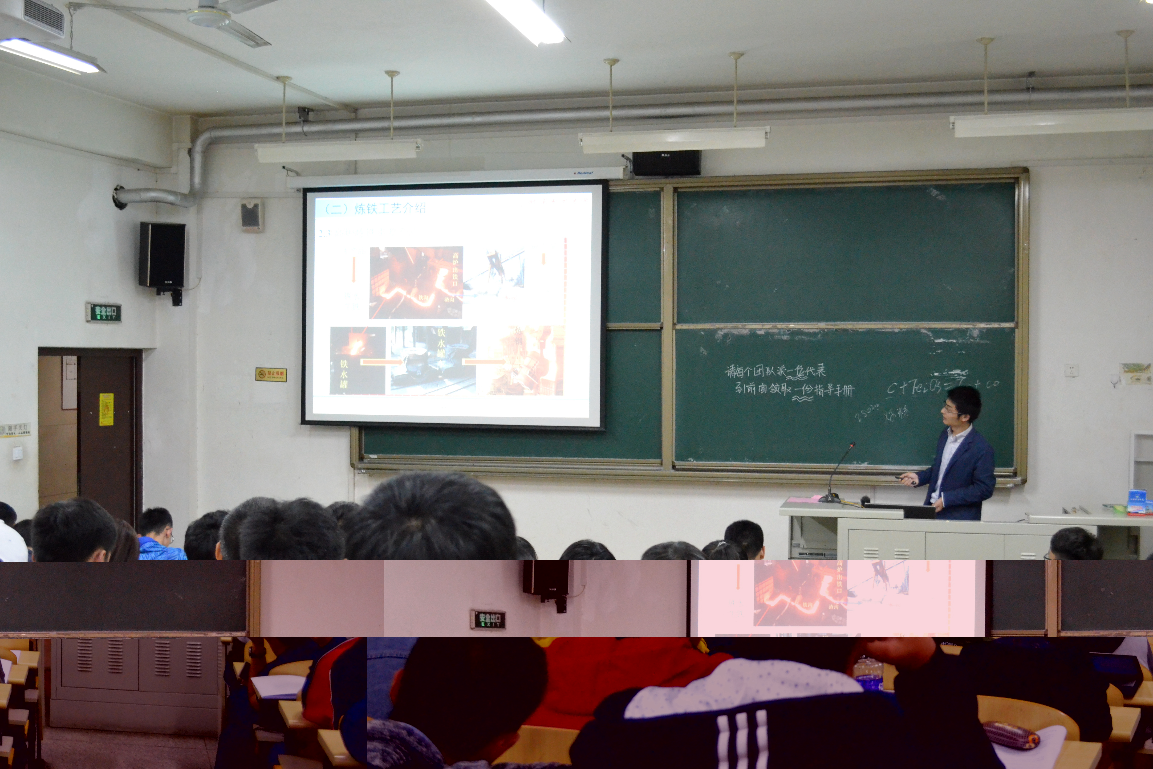 来自武汉科技大学的成人文学 2016届博士毕业生徐润生老师首先从专业知识方面为现场同学们讲解了我国钢铁工业发展现状,明确的指出了中国钢铁在世界钢铁行业的重要地位,并对中国钢铁的产能问题进行了简要的分析说明,强调了钢铁产业在国民经济中的重要地位。紧接着,徐润生老师从冶金学的基本概念入手,系统的给在场的选手介绍了钢铁冶金工艺流程,指出炼铁工艺是传统钢铁生产的上游和重要基础并对高炉炼铁主要原料及其生产工艺、高炉冶炼主要过程、高炉炼铁主要产品等方面进行了详细介绍,让同学们对高炉炼铁有了一个初步的认识,增进了在场同学们的冶金知识。最后,徐润生老师介绍典型钢铁企业生产技术指标,对何为合格钢铁产品进行了简单的阐述。