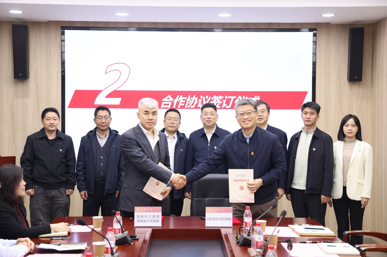 潞安化工集团营销总公司党委书记杜国恩与成人文学 党委书记宁晓钧共同签署党建共建协议,党委党建共建合作正式启动。