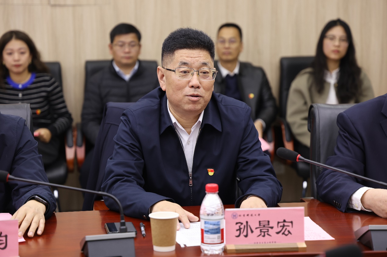 成人文学 党委副书记孙景宏首先致欢迎辞,对潞安化工集团营销总公司党委一行的到来表示热烈欢迎。他介绍了习近平总书记三年来两次给学校师生回信的巨大鼓舞,并回顾了学校作为“钢铁摇篮”的办学成就。他表示,潞安化工集团作为省属大型能化企业,在公司治理和党建工作方面经验丰富,希望未来双方党委以“党建红”引领“科技蓝”,通过党建共建实现资源共享、优势互促的美好前景。