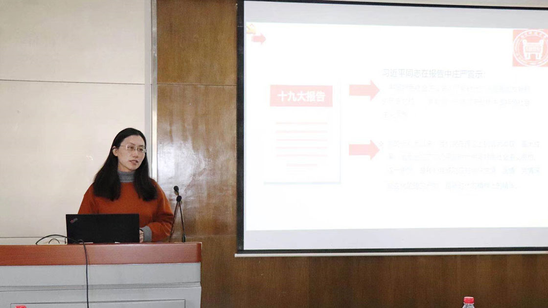 党史学习教育宣讲团成员、马克思主义学院副教授魏丽华受邀作辅导报告,带领大家系统梳理了习近平新时代中国特色社会主义思想的创立背景、科学内涵和历史地位。她在报告中指出,习近平新时代中国特色社会主义思想是新的时代背景的产物,是新的实践基础的成果。当今世界面临着百年未有之大变局,当代中国已不再是国际秩序的被动接受者,而是积极的参与者、建设者、引领者。纵观党史、国史,每一次重大理论创新往往对应着当时最重要的时代课题,习近平新时代中国特色社会主义思想正是肩负着时代使命的系统科学的理论体系,是马克思主义中国化的又一次历史性飞跃,为建设美好世界贡献了中国智慧和中国方案。