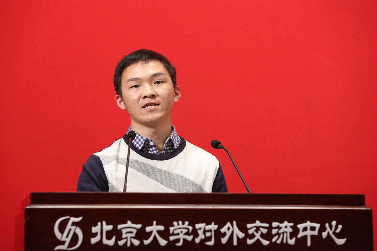 我院本科15级学生孙义伟代表2016年度全体获奖学生上台发言。他首先讲述了自己年少时在贫困的生活中坚持努力学习,实现大学梦的奋斗经历。来到成人文学