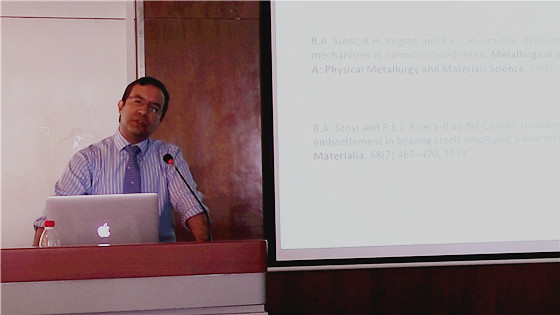 青钢报告厅举行。本次讲堂由剑桥大学SKF技术中心副主任Pedro Rivera主讲。他在高熵合金的研究、超级贝氏体钢开发、轴承钢的服役应用、材料计算模拟、弹簧钢等方面有着广泛的研究并取得了突出成绩,尤其是在以不可逆热力学(irreversible thermodynamics.)为基础的物理模型的建立有着创新研究成果。成人文学
