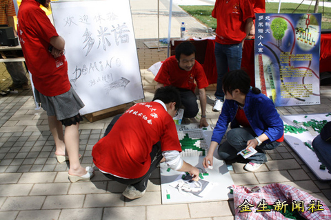 在我院的展位上,蔚蓝人文生态学社向大家展示了许多精美的物品,其原材料是回收的旧物,不禁让大家感叹――原来旧物回收可以如此文艺。学生会与金生新闻社则联手展开学院特色展板介绍、视频展示和有奖问答等活动,通过这种方式展现我院新风貌。