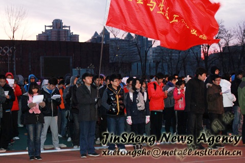 纪念一二•九运动76周年主题教育活动在运动场成功举行。本科11级全体学生参与了此次纪念活动。