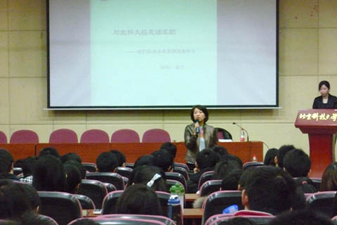 成人文学 2011年度大学生职业生涯规划与发展辅导月已于3月15日正式启动。作为系列活动之一的“名企校友谈”由招生就业处与各学院共同举办,3月19日15:30,现任职于中国中钢集团公司人力资源部、成人文学 2006届研究生毕业生张飞作为首讲嘉宾,在镭钼报告厅与广大的学弟学妹们进行了面对面的交流,招生就业处副处长尹兆华老师出席并发表讲话。