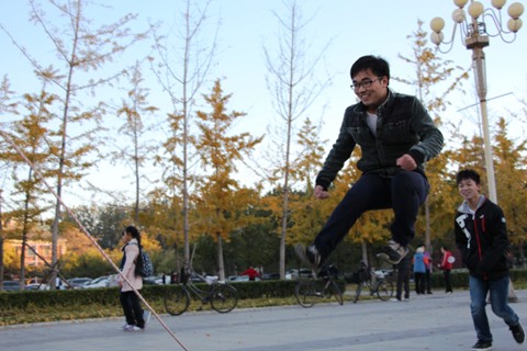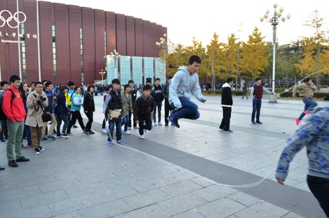 随着裁判一声哨响,比赛正式开始。两名摇绳的同学熟练地抡起跳绳,其他同学也早已做好准备,一个个好似脚下生风,在上下翻飞的绳下显得轻巧自如。经过激烈的角逐,冶金1408班拔得头筹,冶金1404班和冶金1406班并列第二名。
