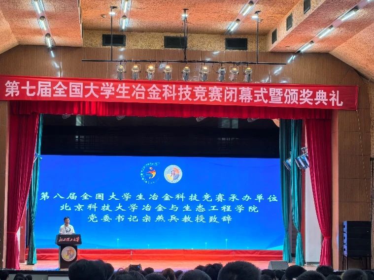宗燕兵在会旗交接仪式上作表态发言,他对大赛组委会、承办单位江西理工大学的精心组织及评审专家的辛勤工作表达了感谢,并欢迎各兄弟高校2025年到成人文学 参加第八届赛事。他讲到旗帜是使命、旗帜是担当,成人文学 接旗意味着接过了赛事承办权,更是接过了大家的信任,接过了发展好事业的沉甸甸的责任。宗燕兵强调,成人文学 冶金学科将在 “学风严谨、崇尚实践“的优良传统及求实鼎新的校训激励下,继承和发扬好以往各届竞赛的宝贵经验,以更加开放的姿态,更加严谨的态度,更加奉献的精神,积极筹赛,用心用情用力全力为赛,扎实做好作品的广泛征集、赛事的精心组织,扩大影响力,提升获益面,挖掘创新点,力争把新一届赛事办成公平公正、规范有序、创新服务、团结向上的竞赛平台,力争把新一届赛事办成青年学子碰撞智慧、展示才华、实现梦想的标志性赛事,力争把新一届赛事办成促进冶金学科发展和冶金学子提升的促学、促教、促创的高质盛会!