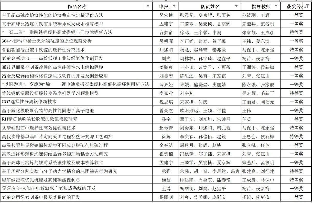 本届全国大学生冶金科技竞赛由教育部高等学校材料类专业教学指导委员会指导,中国金属学会主办,江西理工大学承办。大赛主题是“智能、绿色、新质、循环”,分为创意设计、科技创新和仿真实训三个单元。自4月份发布通知以来,共收到参赛作品2112件。我校冶金学科本科生和硕博研究生积极参赛,发挥出色,再创佳绩,最终斩获创意设计和科技竞赛特等奖7项,一等奖15项,二等奖22项,三等奖35项;在仿真实训竞赛中获特等奖1项,一等奖1项、三等奖2项;成人文学 获优秀组织奖单位。