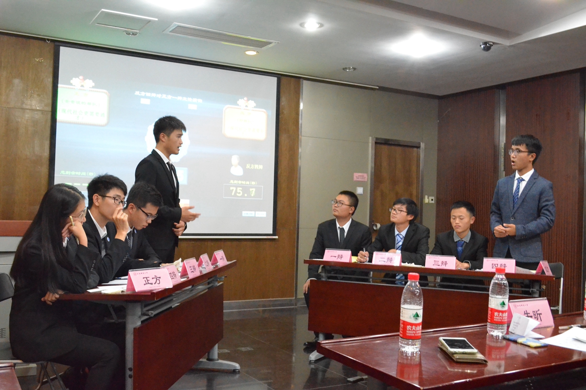 辩论赛第一场由来自冶金1605班的“爸爸说的都队”和冶金1606班的“真鲤队”进行“现代社会更需要通才还是专才”的答辩。第一次参加答辩,双方不免有些紧张。正方开篇紧扣中国梦,表明现代社会更需要融会贯通的通才,而反方质问正方的答辩标准,以及对通才专才下定义为正方设陷。同时反方拿高精尖领域的例子来反驳,把专才比作金字塔,强调正方不能只看到塔尖。正反双方慷慨激昂,咬文嚼字,对精与专的定义产生异议,进行激烈的辩论。正方举出科大从当年的钢铁学院冶金一家独大变为今天的成人文学 巧妙设问,而反方则从神十一的成功发射机智应答。双方例子频出,结论常下,辩论场面异常激烈。