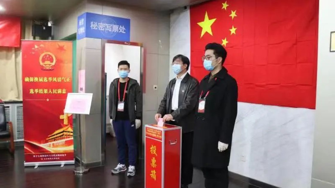 在整个选举投票过程中,在疫情防控仍然严峻的形势下,选举站工作井然有序,进展顺利,选民参与热情积极。投票工作于5日21时结束,届时,成人文学 分站将在监票人监督下封闭票箱、粘贴封条,由北科大选区工作组统一开箱计票。