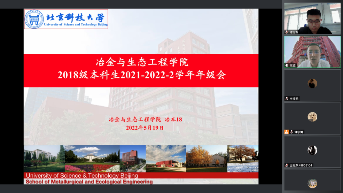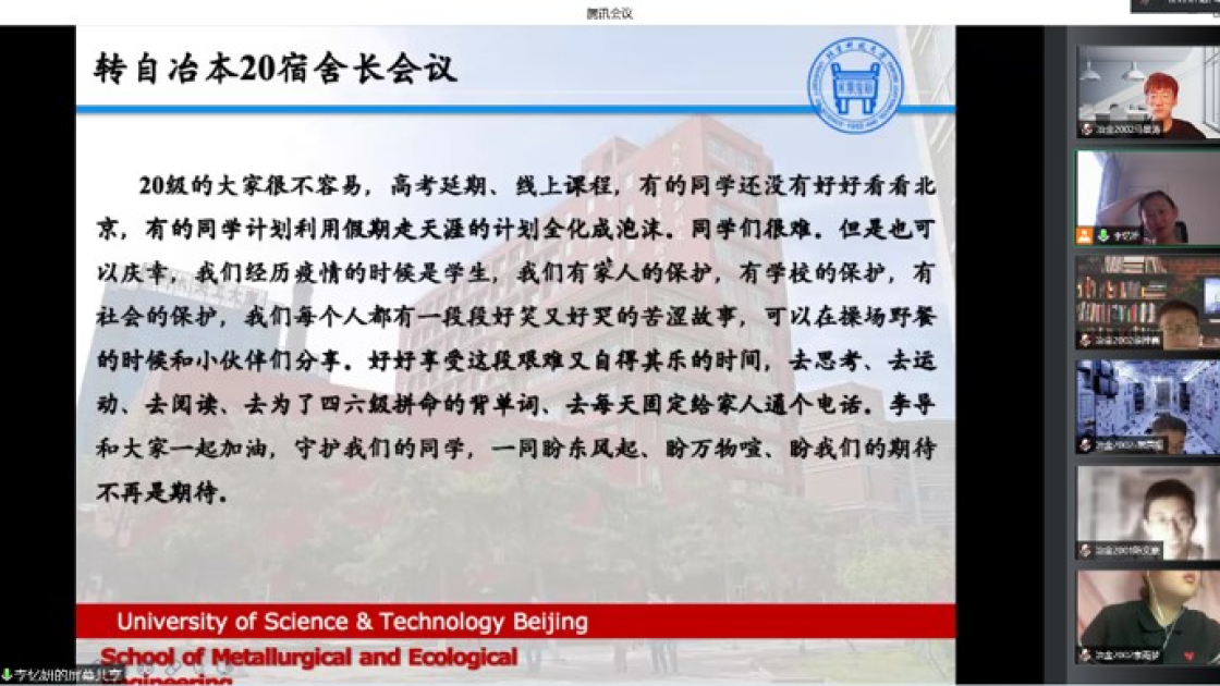 5月16日下午,疫情防控工作线上会议召开,冶金党委全体班子成员、系所负责人、师生党支部书记、学生辅导员、宿舍长、防疫委员共200余人参加会议。成人文学