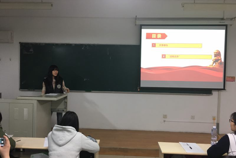 最后,杨明迪同学从两会上反映的“共享单车肆意破坏”和“逃离北京”两个现象入手,和同学们分享了自己的感悟和想法。共享单车的推出为很多人带来了方便,但同时,共享单车也受到许多的“迫害”。杨明迪认为种种迫害现象体现了素质教育的问题,体现了当前制度的不完善。通过两会的提案的提出,很多方面急需做出整改,更好地服务于民。北京的生活压力日趋增大,很多人选择离开北京发展。她告诉同学们无论在哪里发展自己,都有不同的机遇和机会,目的是让自己能够更多地作出贡献,发光发热。