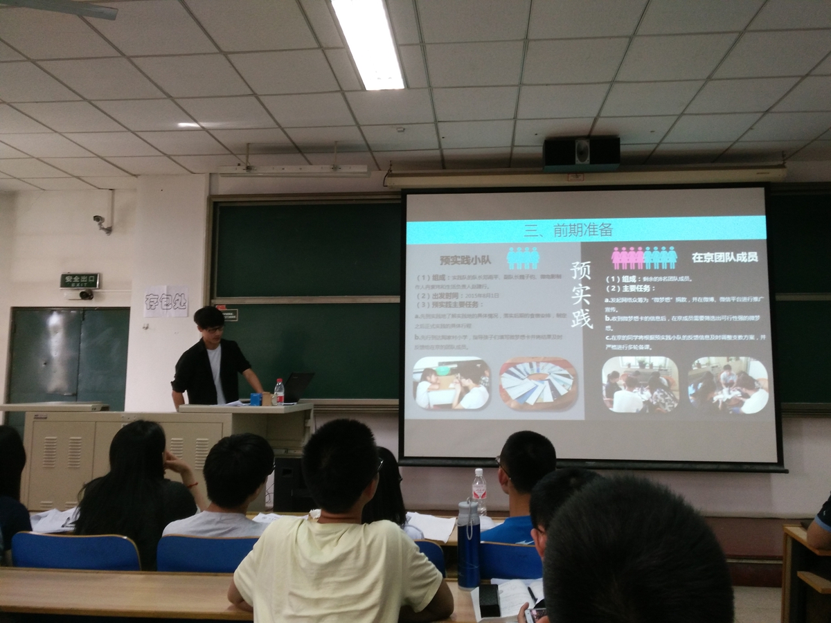 2016年暑期社会实践宣讲会在逸夫楼604召开。出席本次宣讲会的有学院团委书记杨志伟老师和本科14级部分优秀实践团队代表和本科15级全体本科生。会议由学院团委科技实践部长邓雨平主持。