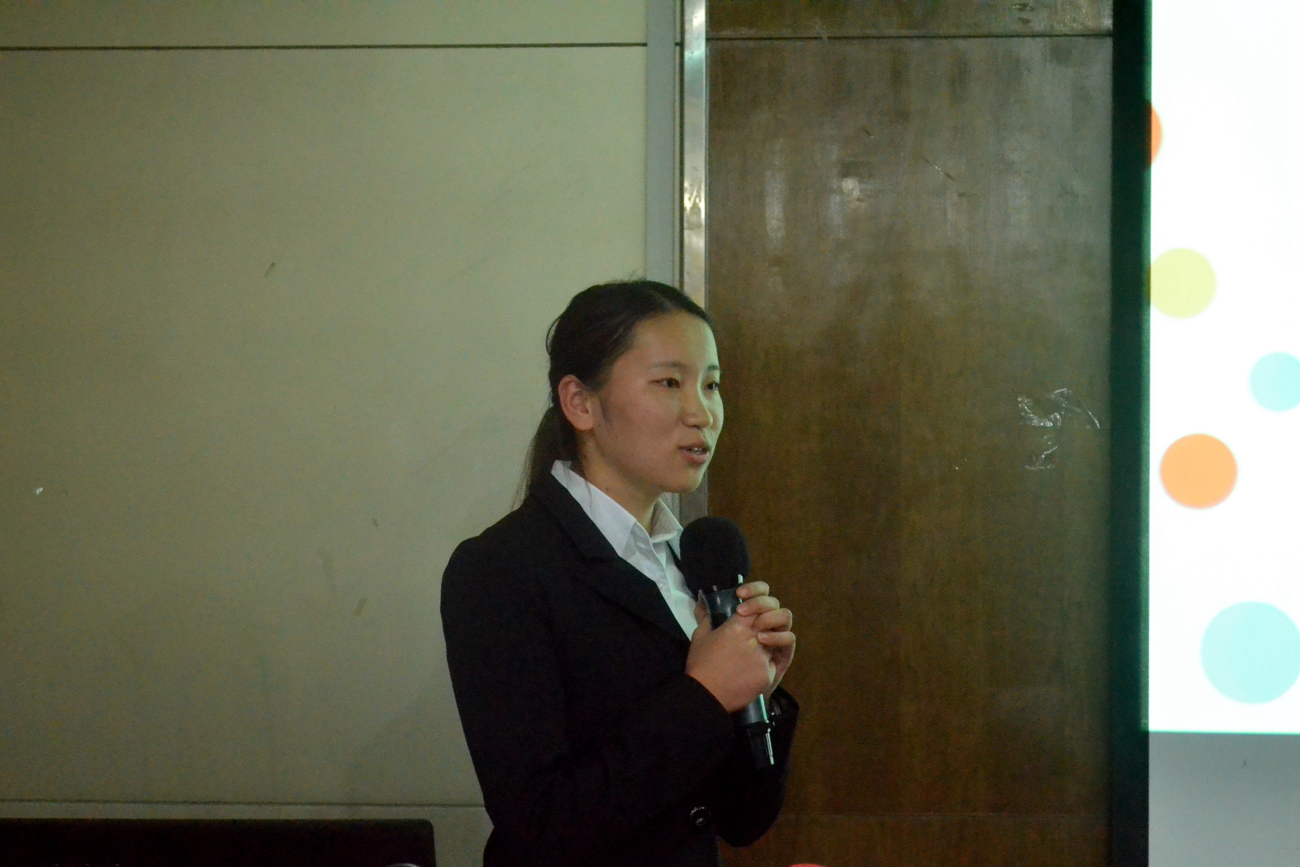 詹方媛同学从学习经历、学生工作等四个方面展示了自己过去一年丰富的大学生活。不仅成绩优异,更积极参与学生工作,把复杂的事情做简单,把简单的事情做细腻,热爱加入,在合作里提升自己,在工作中收获友谊。“戒浮躁,肯吃苦,讲原则,贵奉献”。