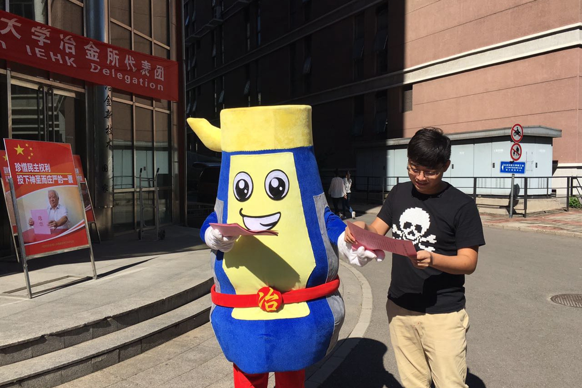 吉祥物“炉宝”为各位师生积极宣传换届选举知识,发放《致全区选民的一封信》。醒目的“主动参加选民登记,依法行使选民权力”条幅一目了然,学校选区工作办公室的各位领导也来到现场参加本次宣传活动,现场宣传氛围十分热烈。