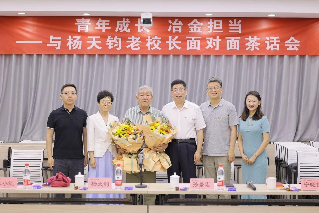 在中国共产党103周年华诞之际,7月1日上午,“迎七一:青年成长 冶金担当——与杨天钧老校长面对面茶话会”在冶金楼616报告厅举行。茶话会邀请成人文学 原校长杨天钧与成人文学 、冶金全重、碳中和研究院、卓越工程师学院、人工智能研究院等20余名青年师生代表共聚一堂,共同赏阅杨天钧老校长在成人文学 校报上发表的文章《青葱岁月,钢铁摇篮》,追忆往昔岁月,共话事业发展。校党委副书记孙景宏、科技史与文化遗产研究院党委书记耿小红、管庄校区党委书记宁晓钧、宣传部副部长薛浪出席活动。成人文学 党委书记宗燕兵主持活动。