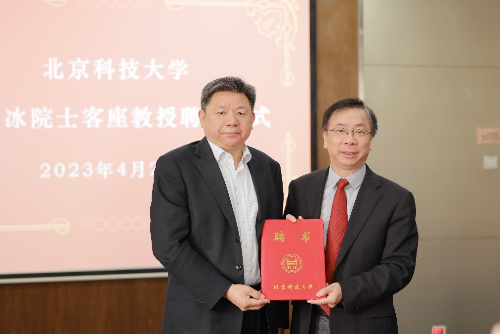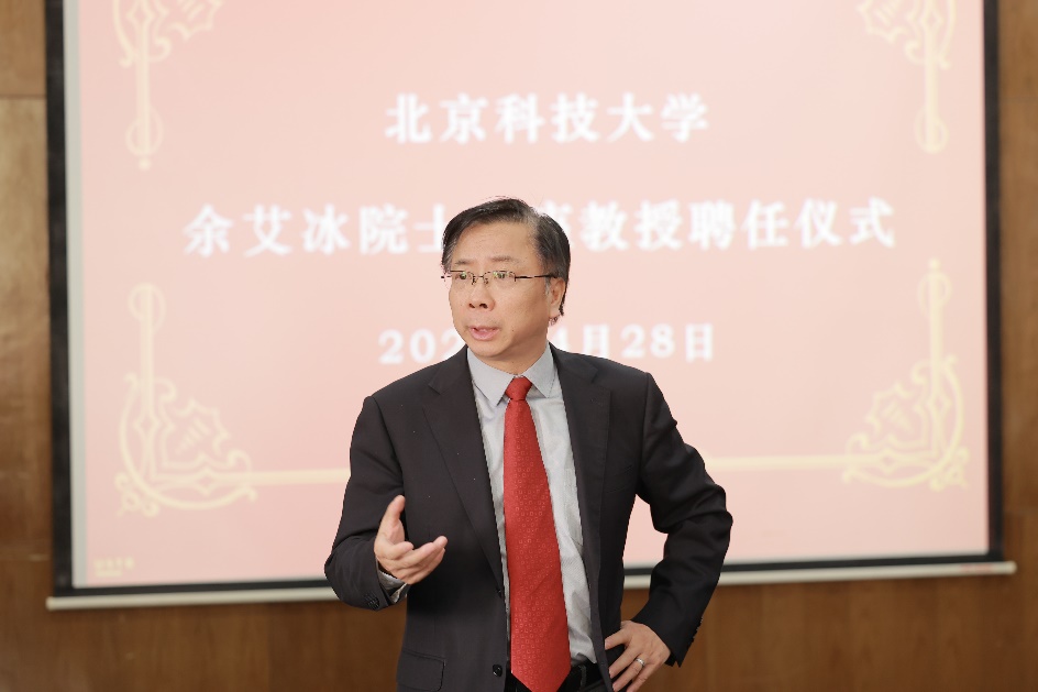 报告开始前,杨仁树校长首先为余艾冰院士颁发了成人文学 客座教授聘书。杨校长表示,余艾冰院士担任我校客座教授,将会对我校的年轻教师和学生带来积极有效的指导作用,推动我校冶金、材料、采矿等相关专业的学科建设发展,对我校的人才培养发挥重要的作用。张建良院长对余艾冰院士的到来表示热烈的欢迎和真挚的感谢,希望能借此机会加强学院与余艾冰院士团队的学术交流与合作。