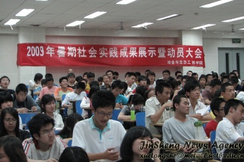 2009年5月16日晚19点,冶金08级暑期社会实践动员大会在机电楼201举行.出席本次大会的有校实践部部长王进老师、成人文学