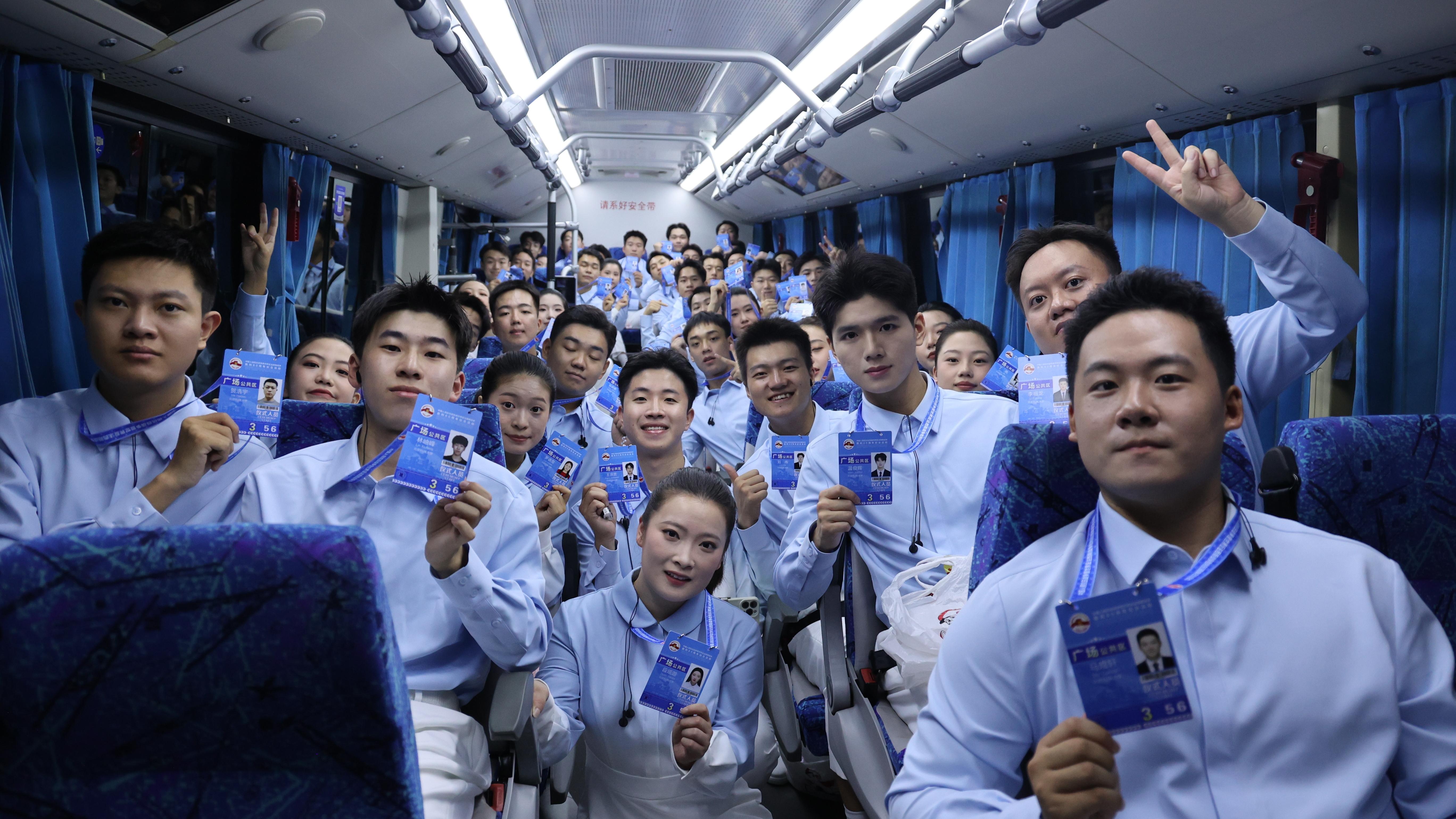 自组建学院分团开始,129个日夜的努力和付出,成人文学 师生用饱满的热情和认真的态度,完成了各项训练任务,学院始终关心各位学生的训练情况,出发前夕,学院党委书记宁晓钧,党委副书记、副院长康泰,辅导员张卓勋与参加活动师生进行了亲切交流,并送上了学院慰问礼品。9月3日中午,康泰、张卓勋代表学院迎接参与广场合唱师生返校。