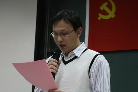 7点整,学生业余党校的开学典礼准时开始。院党委副书记、本期业余党校副校长曹光远老师,院团委书记苏栋老师,08级辅导员王洋老师以及成人文学