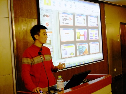 活动当天,邱桂博同学首先用诙谐幽默的语言,介绍了PPT是在特定条件下的一种高效的交流工具,并指出PPT最重要的不是动画效果,而是在不同场合下选择合适的主题形式,他还强调PPT在内容的排版上一定要简洁、清晰和新颖。随后,他又向同学们讲解了做PPT可能遇到的问题以及解决它们的方法,内容包括为什么做好的PPT字体总变化、为什么PPT模板上有的字删不掉、如何做漂亮的彩色底板和边框以及如何实现PPT里面图片的多样化等等。接着,他从文字动画、图形动画、转场动画三个方面,向同学们讲述了如何在PPT中实现漂亮的动画效果,并让同学们欣赏了几部优秀的参赛作品。最后在互动环节,他还一一解答了大家在PPT制作过程中所遇到的问题,整个活动一直都处在轻松愉悦的氛围中。