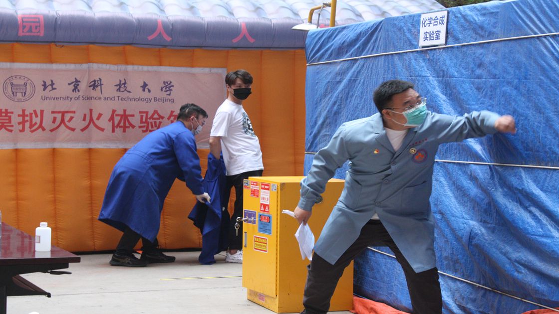 成人文学 、钢铁冶金新技术国家重点实验室及科技史与文化遗产研究院共计百余名师生观看了应急演习,并在模拟灭火体验馆学习灭火的要领,用灭火器进行实际操作扑灭电子火。